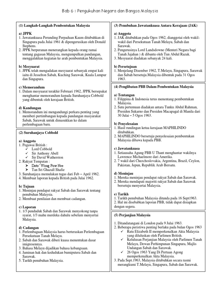 Sejarah Spm Nota Padat Sejarah Tingkatan 5 Bab 4 Pembinaan Negara Dan Bangsa Malaysia