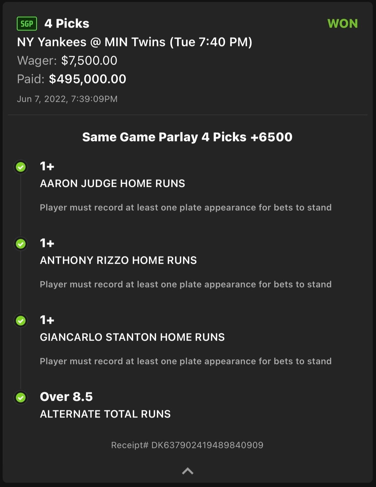 Moneylines game totals bets against the spread. Parlay A Parlay bet is a bet placed on multiple outcomes to occur. Here are my same-game parlay picks for Tuesdays matchup between the Yankees and Mets odds via DraftKings Sportsbook.